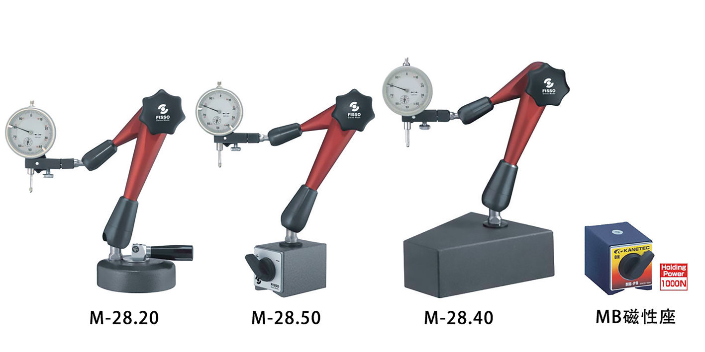 ● 尺寸范围较大的万向磁力座,适用于所有机器、测量系统上固定测试仪表(百分表/千分表)
